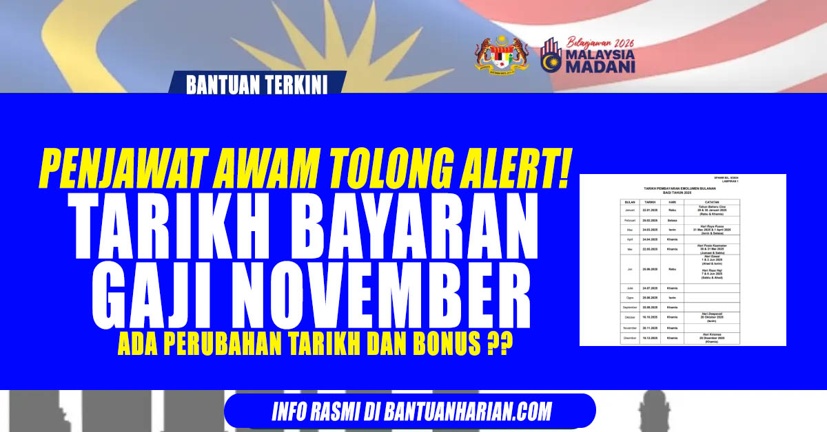 TARIKH GAJI PENJAWAT AWAM NOVEMBER : DIBAYAR AWAL DAN ADA BONUS ?