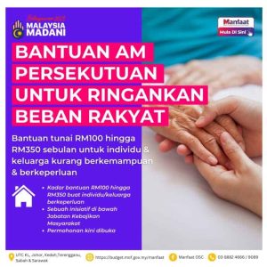Jabatan Kebajikan Masyarakat (JKM) kini meneruskan Bantuan Am Persekutuan (BA) bagi tahun 2025, dengan kadar bantuan sehingga RM350 sebulan untuk golongan miskin, ibu tunggal, warga emas, dan individu yang kehilangan punca pendapatan.