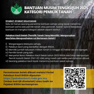 Layari portal rasmi RISDA atau Bantuan Harian untuk info lengkap Bantuan Musim Tengkujuh (BMT) 2025.