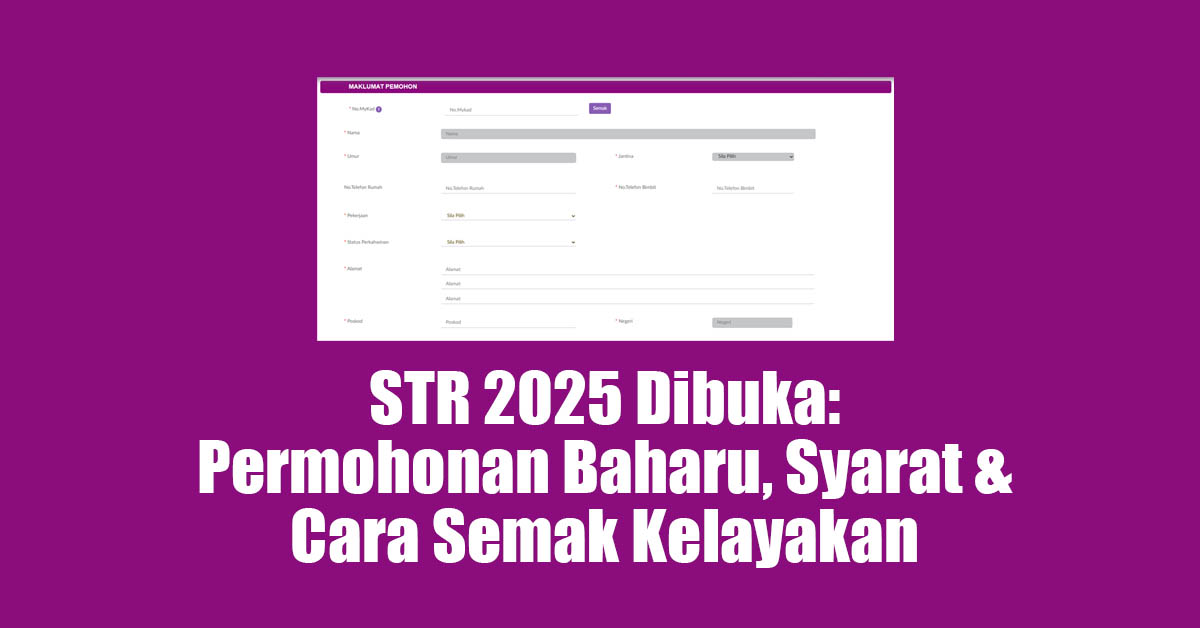 Artikel ini akan menghuraikan secara lengkap, terperinci dan mudah difahami tentang bagaimana anda boleh memohon STR 2025 dengan berjaya. Kami akan kongsikan syarat kelayakan, dokumen sokongan, langkah permohonan online, jadual bayaran, tips penting dan juga soalan lazim yang sering ditanya oleh pemohon.