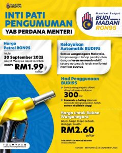 Jangan lupa untuk mula membuat semakan kelayakan bermula 25 September 2025 dan nikmati harga subsidi bermula 30 September 2025. Gunakan peluang ini untuk merancang pengisian minyak dengan lebih bijak.